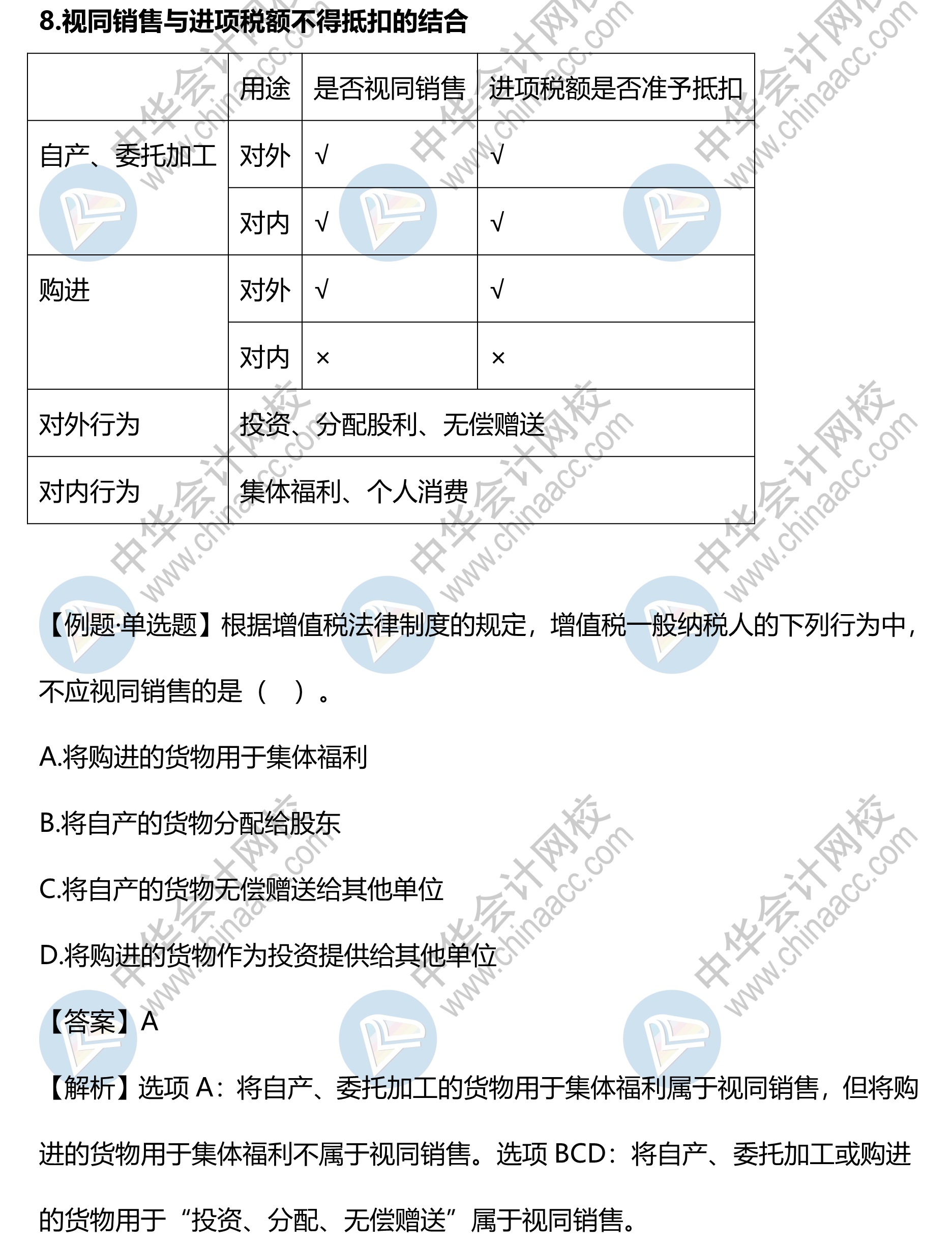 中级《经济法》10大易错易混第8点:视同销售与进项税额不得抵扣的结合