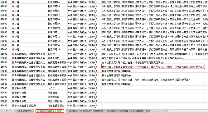 2020中央机关及其直属机构考试录用公务员公告中可以看到:在国考职位表当中的“财务工作一级主任科员”等岗位,明确说明需持有初级、中级或高级会计专业技术资格证书,并注明资格证书编号。