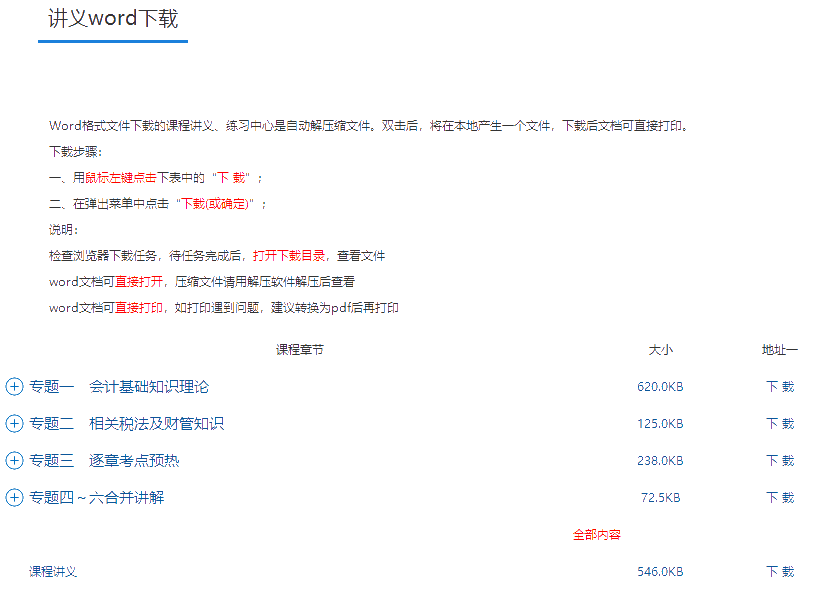 进入讲义下载页面点击“下载”,然后将下载的讲义打包送去打印即可