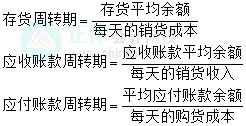 现金周转期=存货周转期+应收账款周转期-应付账款周转期=经营周期-应付账款周转期