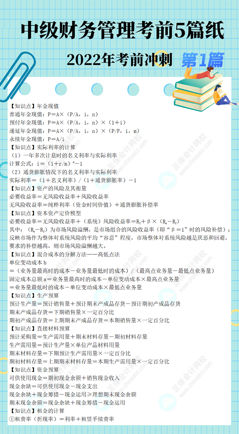 2022年中级会计师考试《财务管理》考前冲刺黄金期5篇纸来啦!能量补给,解你燃眉之急!“冲段位”!