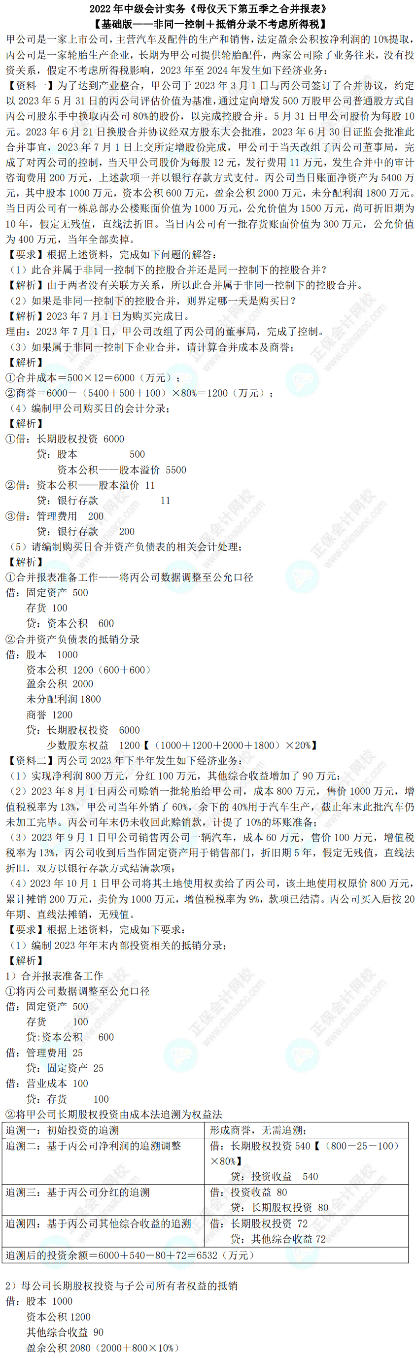 【答案下载版】 2022年中级母仪天下第五季之合并报表