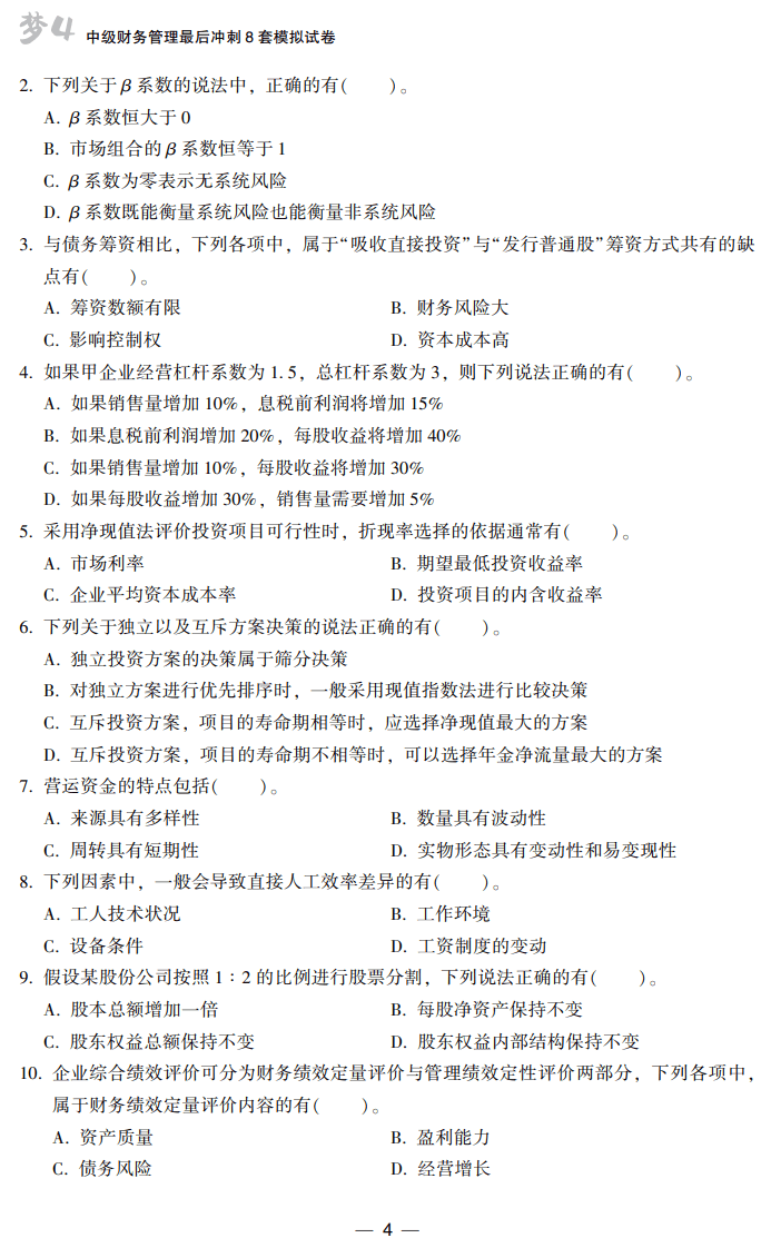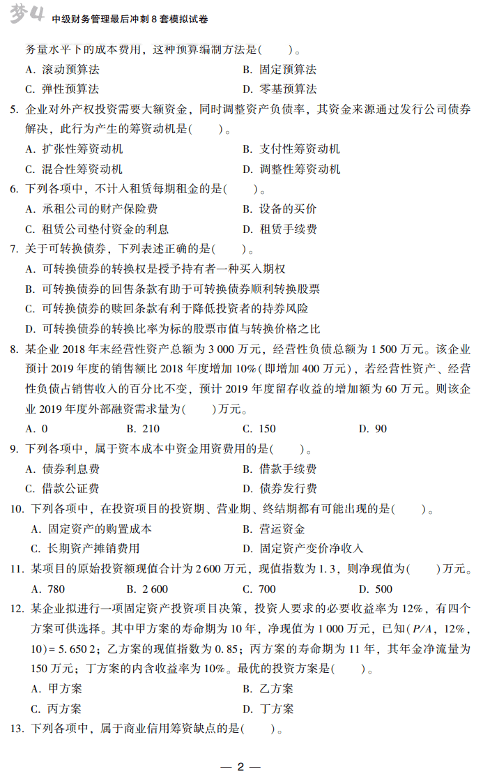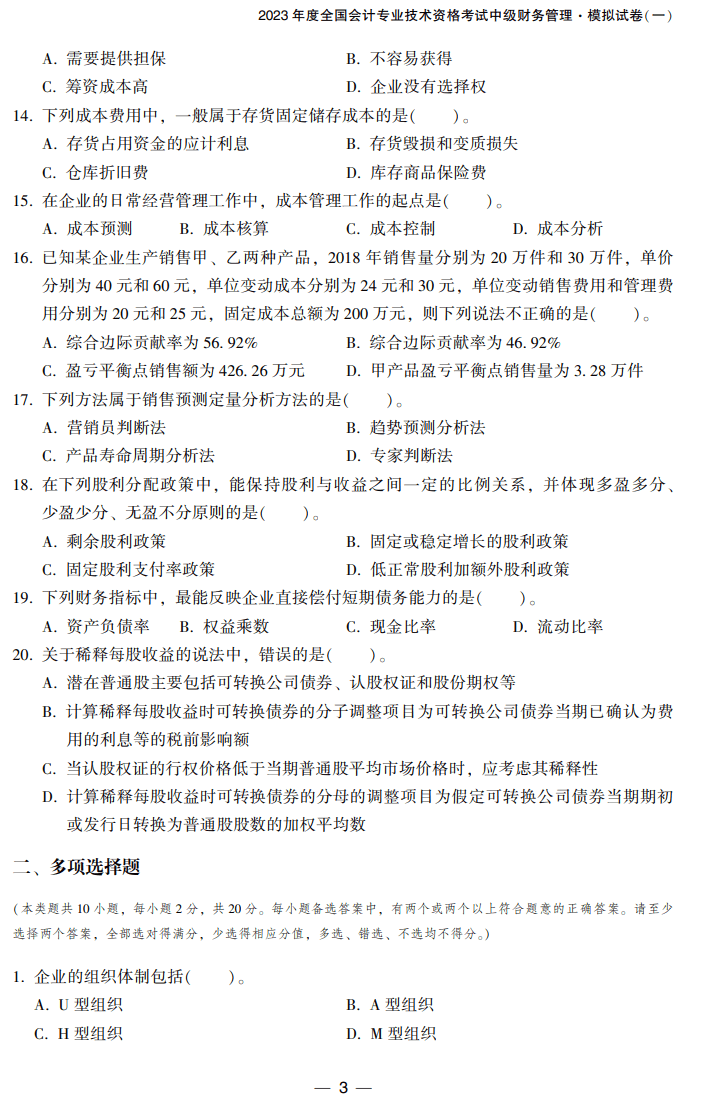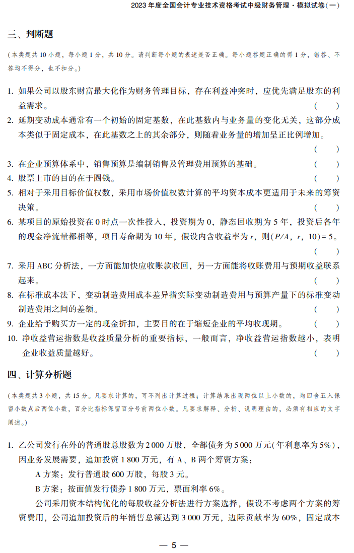 2023年中级会计职称财务管理试题长什么样?为了让各位中级会计考生了解真正考试试题的范围及难度,特准备了2023年中级会计职称财务管理《最后冲刺8套模拟试卷》免费试读版!希望对大家的备考有所帮助。