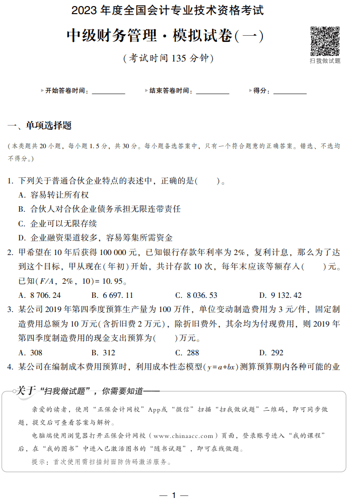 为了让各位中级会计考生了解真正试题的范围及难度,特准备了2023年中级会计职称模拟题,摘自《最后冲刺8套模拟试卷》!