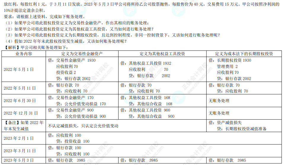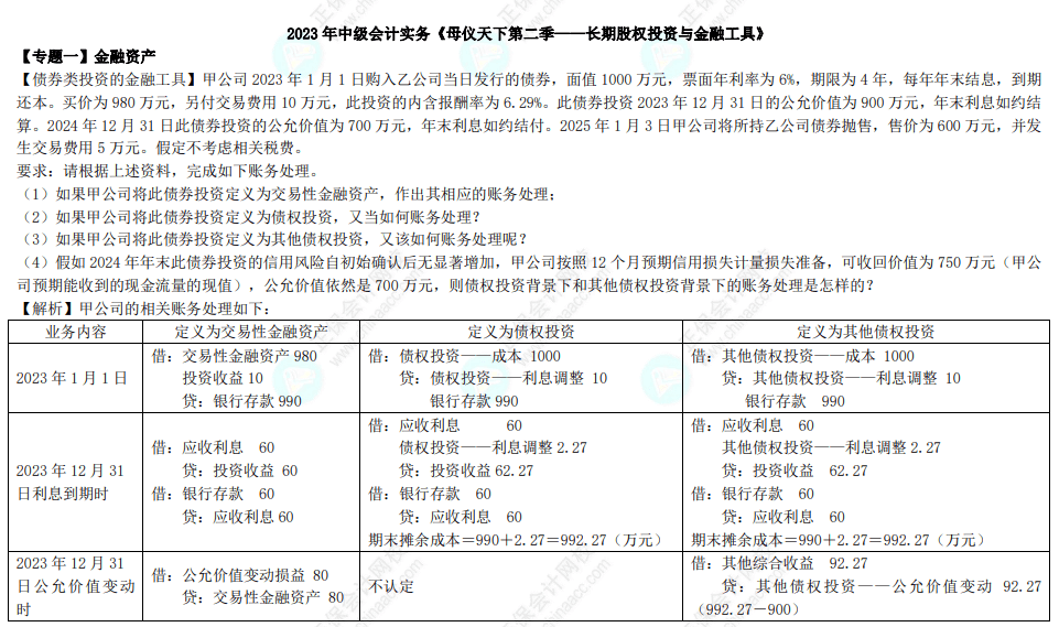 2023年中级会计实务《母仪天下第二季之长期股权投资与金融工具》(题目及答案解析)