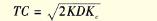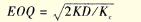 式中,D为存货年需用量,K为每次订货费用,KC为单位存货储存费。