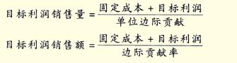 目标利润=(单价一单位变动成本)×销售量一固定成本