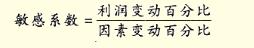 各相关因素变化都会引起利润的变化,但其影响程度各不相同。如有些因素虽然只发生了较小的变动,却导致利润很大的变动,利润对这些因素的变化十分敏感,称这些因素为敏感因素。反映各因素对利润敏感程度的指标为利润的敏感系数,其计算公式为: