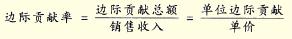 单位边际贡献=单价一单位变动成本=单价×边际贡献率