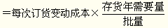 1)储存变动成本=单位储存变动成本×平均库存量=单位储存变动成本×![]()