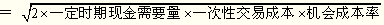 2.相关成本=交易成本(相当于“订货成本”)+机会成本(相当于“储存成本”)