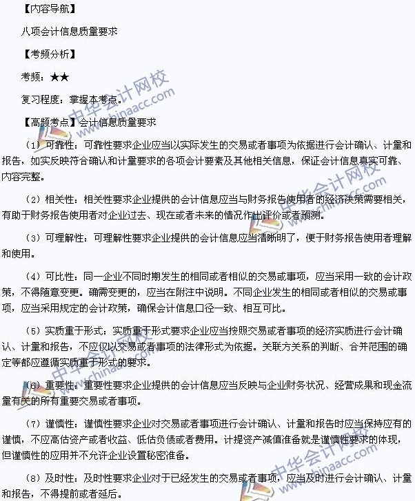 我们一起来学习2014年中级会计职称《中级会计实务》高频考点:会计信息质量要求。本考点属于《中级会计实务》第一章总论第二节会计信息质量要求的内容。