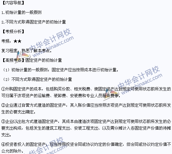 我们一起来学习2014年中级会计职称《中级会计实务》高频考点:固定资产的初始计量。本考点属于《中级会计实务》第三章固定资产第一节固定资产的确认和初始计量的内容。