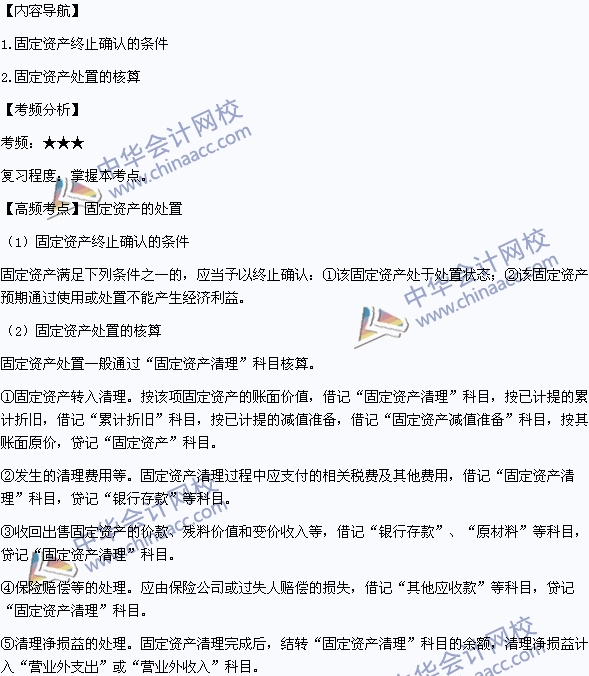 我们一起来学习2014年中级会计职称《中级会计实务》高频考点:固定资产的处置。本考点属于《中级会计实务》第三章固定资产第三节固定资产的处置的内容。