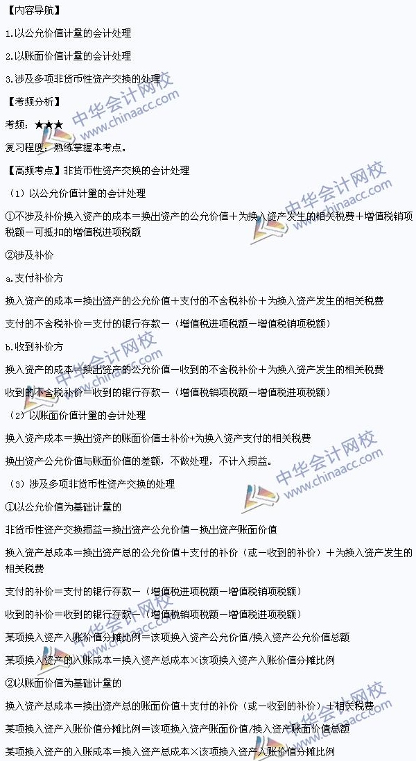 我们一起来学习2014年中级会计职称考试《中级会计实务》高频考点:非货币性资产交换的会计处理。本考点属于《中级会计实务》第七章非货币性资产交换第二节非货币性资产交换的确认和计量的内容。