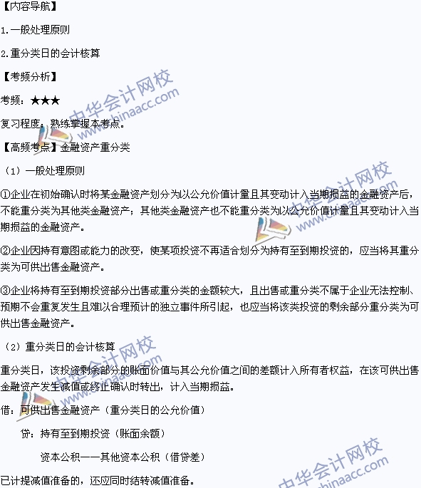 我们一起来学习2014年中级会计职称考试《中级会计实务》高频考点:金融资产重分类。本考点属于《中级会计实务》第九章金融资产的内容。