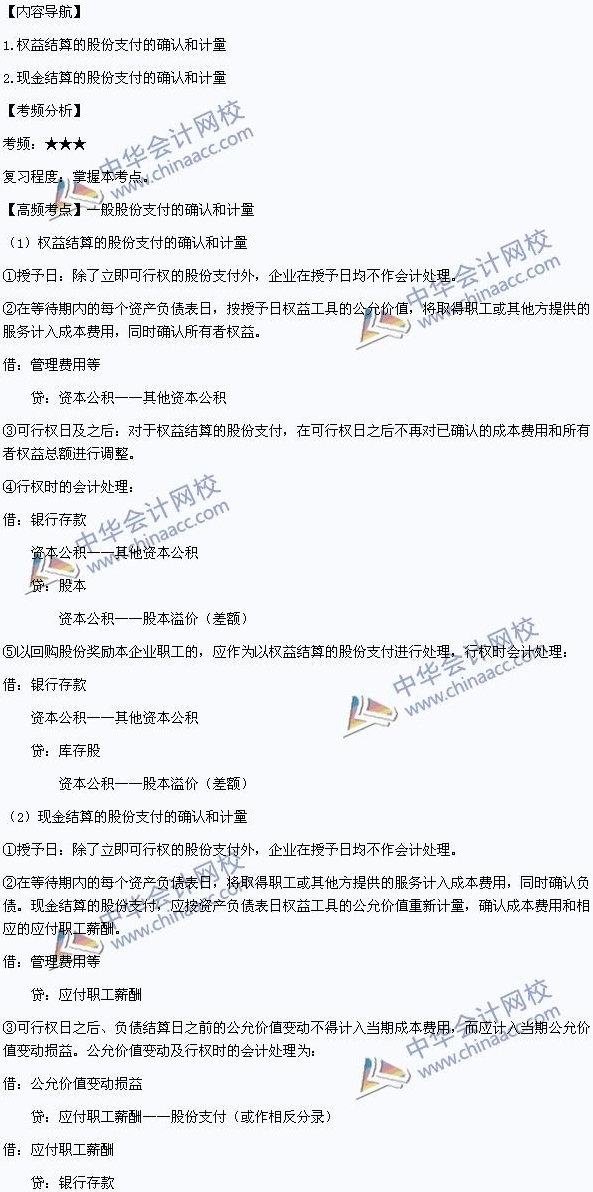 我们一起来学习2014年中级会计职称考试《中级会计实务》高频考点:一般股份支付的确认和计量。本考点属于《中级会计实务》第十章股份支付第二节股份支付的确认和计量的内容。