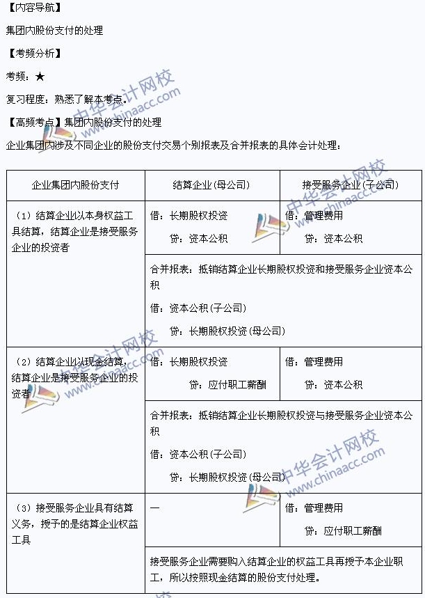 我们一起来学习2014年中级会计职称考试《中级会计实务》高频考点:集团内股份支付的处理。本考点属于《中级会计实务》第十章股份支付第二节股份支付的确认和计量的内容。