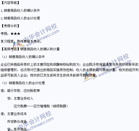 我们一起来学习2014年中级会计职称考试《中级会计实务》高频考点:销售商品收入的确认和计量。本考点属于《中级会计实务》第十四章收入第一节销售商品收入的确认和计量的内容。