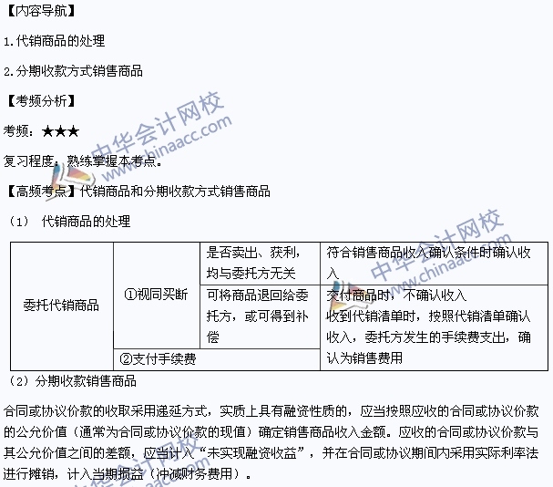 我们一起来学习2014年中级会计职称考试《中级会计实务》高频考点:代销商品和分期收款方式销售商品的处理。本考点属于《中级会计实务》第十四章收入第一节销售商品收入的确认和计量的内容。