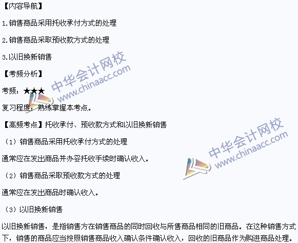 我们一起来学习2014年中级会计职称考试《中级会计实务》高频考点:托收承付、预收款方式和以旧换新销售。本考点属于《中级会计实务》第十四章收入第一节销售商品收入的确认和计量的内容。
