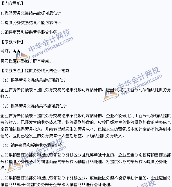 我们一起来学习2014年中级会计职称考试《中级会计实务》高频考点:提供劳务收入的会计核算。本考点属于《中级会计实务》第十四章收入第二节提供劳务收入的确认和计量的内容。