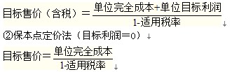 目标售价×(1-税率)=单位成本+单位目标利润