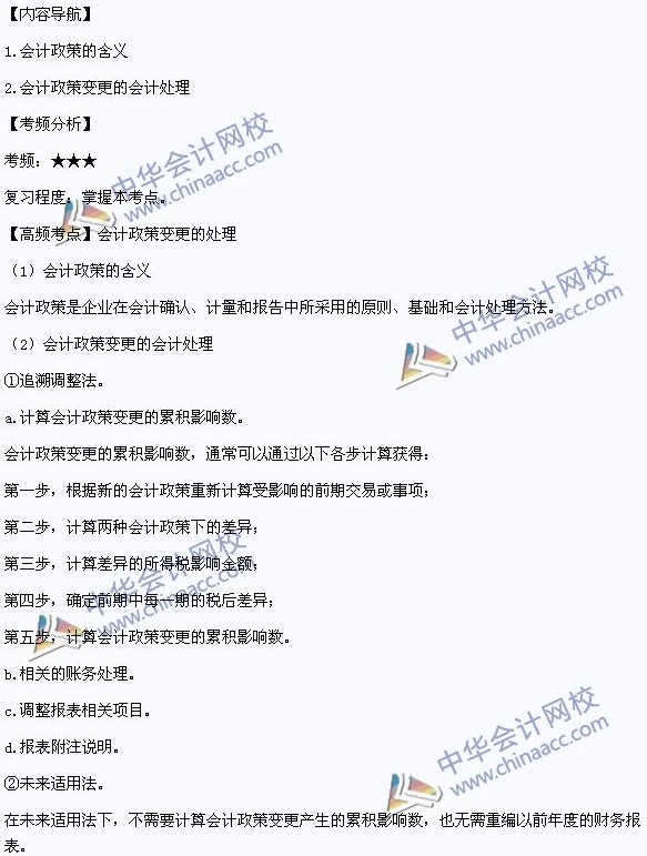我们一起来学习2014年中级会计职称考试《中级会计实务》高频考点:会计政策变更的处理。本考点属于《中级会计实务》第十八章会计政策变更、会计估计变更和差错更正第一节会计政策及其变更的内容。