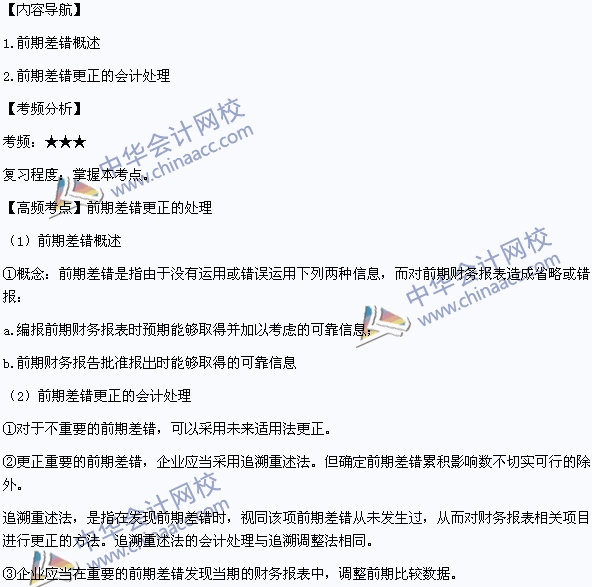 我们一起来学习2014年中中级会计职称考试《中级会计实务》高频考点:前期差错更正的处理。本考点属于《中级会计实务》第十八章会计政策变更、会计估计变更和差错更正第三节前期差错更正的内容。