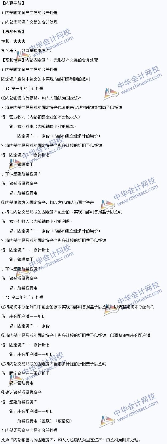 我们一起来学习2014年中级会计职称《中级会计实务》高频考点:内部固定资产、无形资产交易的合并处理。本考点属于《中级会计实务》第二十章财务报告的内容。