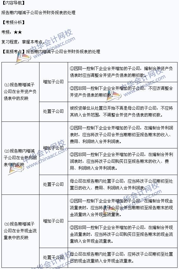 我们一起来学习2014年中级会计职称《中级会计实务》高频考点:报告期内增减子公司合并财务报表的处理。本考点属于《中级会计实务》第二十章财务报告的内容。
