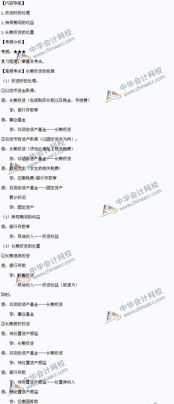 我们一起来学习2014年中级会计职称《中级会计实务》高频考点:长期投资的核算。本考点属于《中级会计实务》第二十一章事业单位会计第二节事业单位特定业务的核算的内容。