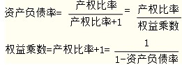 1)表明股东每投入1元钱可实际拥有和控制的金额,即资产总额相当于所有者权益的倍数。