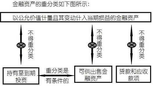 (一)企业在初始确认时将某金融资产划分为以公允价值计量且其变动计入当期损益的金融资产后,不能重分类为其他类金融资产;其他类金融资产也不能重分类为以公允价值计量且其变动计入当期损益的金融资产。