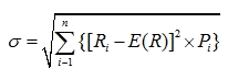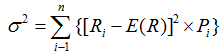收益率的方差用来表示随机变量(资产收益率的各种可能值)与期望值之间的偏离程度。其计算公式为: