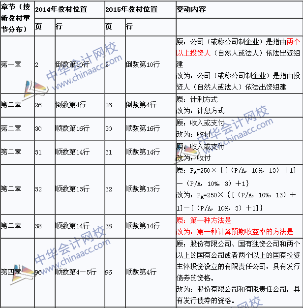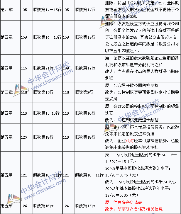 总体变化:与2014年教材相比,主要是修改或删除了一些与现行《公司法》不符的内容;修改了一些旧教材的错误。具体参见下表。