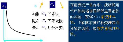 一般来讲,随着证券资产组合中资产个数的增加,证券资产组合的风险会逐渐降低,当资产的个数增加到一定程度时,组合风险的降低将非常缓慢直到不再降低。