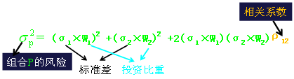 影响组合标准差的因素有三个:投资比例、单项资产收益率的标准差、相关系数。