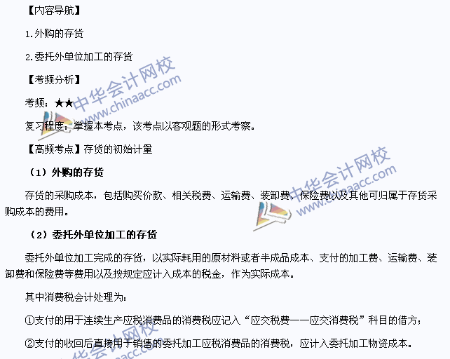 我们一起来学习2013年中级会计职称《中级会计实务》高频考点:存货的初始计量。本考点属于《中级会计实务》第二章存货第一节存货的确认和初始计量的内容。