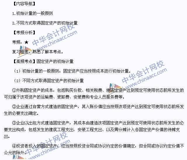 我们一起来学习2013年中级会计职称《中级会计实务》高频考点:固定资产的初始计量。本考点属于《中级会计实务》第三章固定资产第一节固定资产的确认和初始计量的内容。
