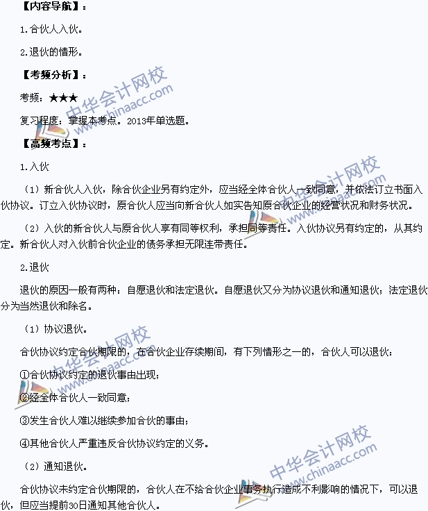 我们一起来学习2015年中级会计职称《经济法》高频考点:普通合伙人入伙与当然退伙的情形。本考点属于《经济法》第三章其他主体法律制度第二节的内容。
