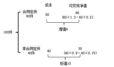 该存货期末应提足的跌价准备10万元,(这里务必要注意,不能将有合同部分与无合同部分合并在一起认定存货的跌价幅度,那样的话,该存货出现贬值的金额为4万元,而这样作就会掩盖无合同部分存货的可能损失。)