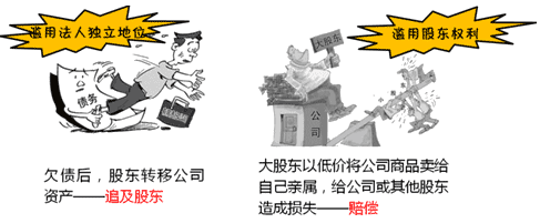 滥用什么? 损害谁? 责任怎样? 滥用“公司法人独立地位和股东有限责任” 严重损害公司“债权人”利益 股东应当对公司债务承担“连带责任” 滥用“股东权利” 给“公司或者其他股东”造成损失 依法承担“赔偿责任”