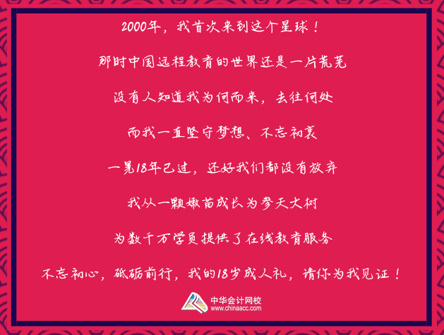 网校18岁生日,祝福正保会计网校越办越好!祝网校生日快乐!原帖>>