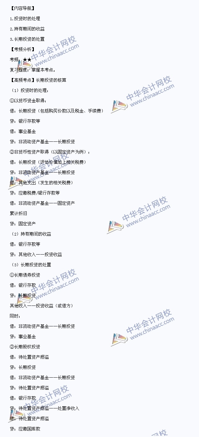 我们一起来学习2013年中级职称《中级会计实务》高频考点:长期投资的核算。本考点属于《中级会计实务》第二十一章事业单位会计第二节事业单位特定业务的核算的内容。