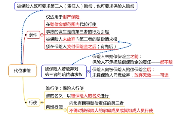 【示例】骑自行车的A骑车撞坏了停在路边的汽车,小汽车车主B得到了保险公司的赔偿5万后,保险公司可以向A请求赔偿,但是最多要求的是5万元。