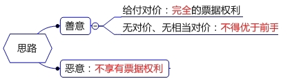 【链接】持票人无对价或不相当对价取得票据的,其享有的票据权利不得优于前手,票据债务人可以对抗持票人前手的抗辩事由对抗该持票人。(P223)