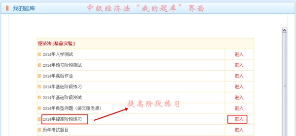 2014中级职称《中级经济法》“我的题库”界面