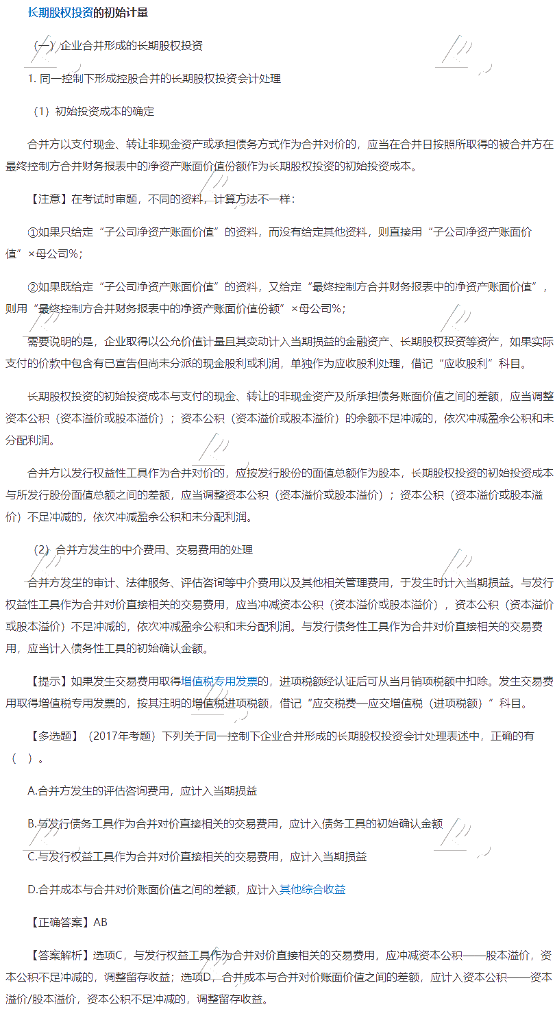 知识点七十四 长期股权投资的后续计量