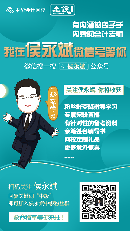快快关注公众号,查收侯永斌老师发给大家的“告白信”,会计职称备考路上,与侯永斌老师一起前行!